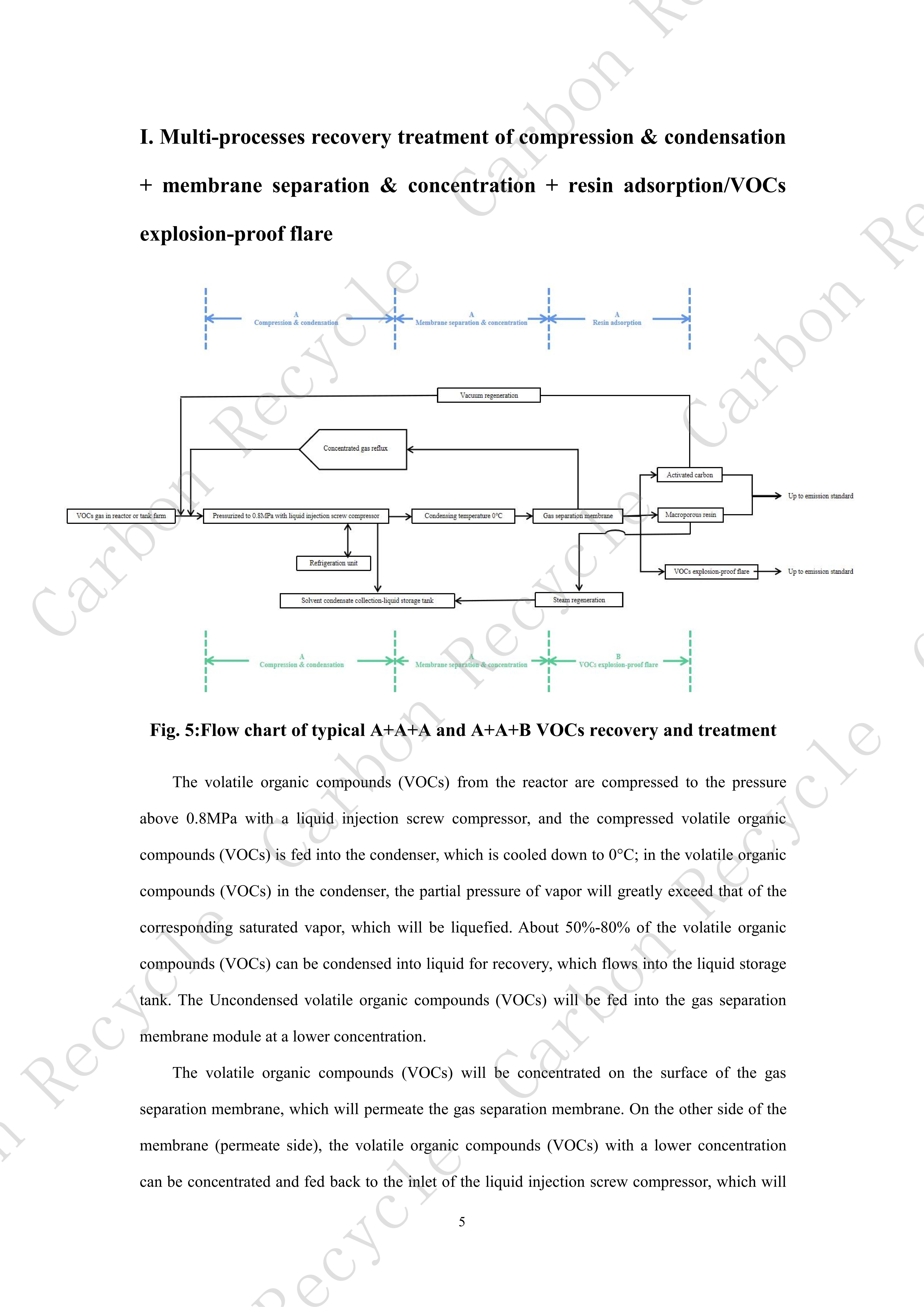 I. Multi-processes recovery treatment of compression & condensation+ membrane separation & concentration + resin adsorption/VOCs explosion-proof flare