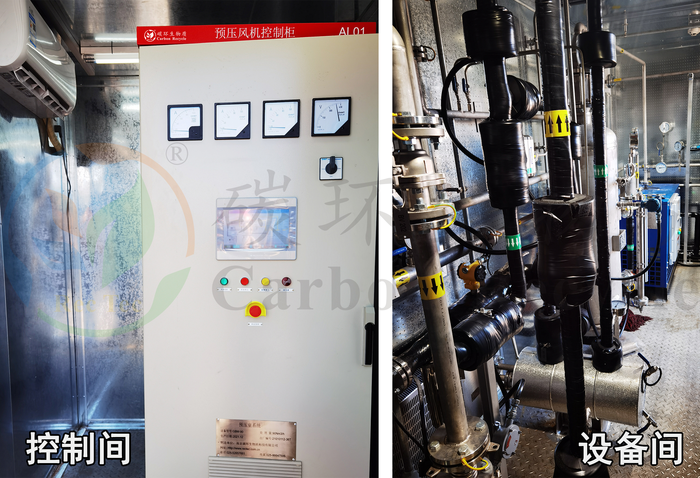 南京碳環(huán)90Nm3/h瓦斯氣預(yù)壓室系統(tǒng)為4臺(tái)顏巴赫J(rèn)620燃?xì)獍l(fā)電機(jī)組提供預(yù)燃室所需的燃?xì)?,該系統(tǒng)采用集裝箱結(jié)構(gòu)。集裝箱內(nèi)分隔為設(shè)備間和控制間,設(shè)備間除含主設(shè)備(無油壓縮機(jī)、過濾器、冷干機(jī)等)外,還配備供暖、伴熱保溫、照明、通風(fēng)等設(shè)備(均為防爆產(chǎn)品),同時(shí)安裝有火警、瓦斯超限報(bào)警裝置,并將報(bào)警信號(hào)接入電廠DSC系統(tǒng)中,火警、瓦斯超限報(bào)警系統(tǒng)具備連跳功能;控制間除安裝了控制柜外,還安裝了照明、空調(diào)。整個(gè)系統(tǒng)布置緊湊、檢修通道寬敞,獲得用戶的好評(píng)。