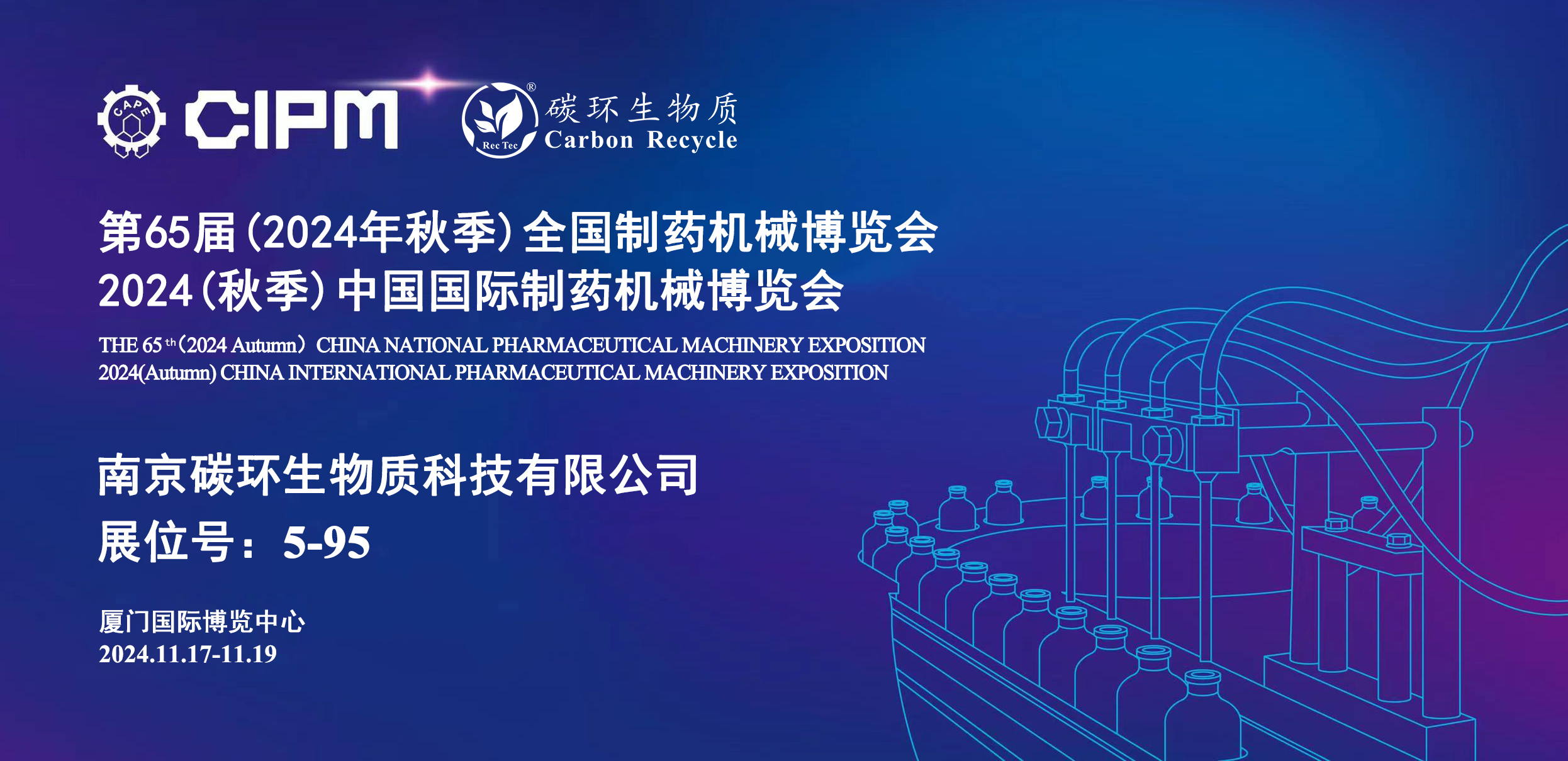 南京碳環(huán)生物質(zhì)科技有限公司將于2024年11月17日-19日在廈門國際博覽中心參加第65屆 (2024年秋季) 全國制藥機(jī)械博覽會(huì)2024 (秋季) 中國國際制藥機(jī)械博覽會(huì)(以下簡(jiǎn)稱“藥機(jī)博覽會(huì)”),誠摯邀請(qǐng)您蒞臨指導(dǎo)。