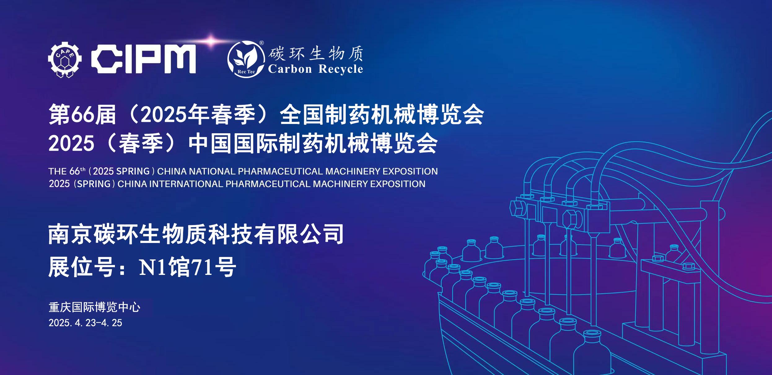南京碳環(huán)生物質科技有限公司將于2025年4月23日-25日在重慶國際博覽中心參加第66屆(2025年春季)全國制藥機械博覽會暨2025(春季)中國國際制藥機械博覽會,誠摯邀請您蒞臨指導。