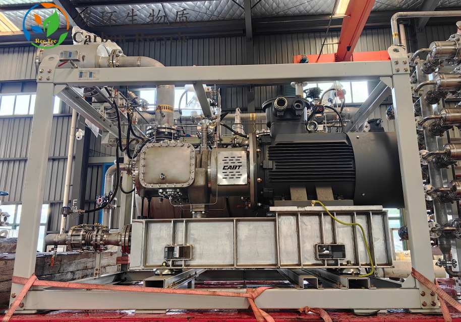 壓縮單元選用的無(wú)油單螺桿壓縮機(jī),系統(tǒng)采用去離子水潤(rùn)滑,潔凈、無(wú)油,機(jī)頭的容積效率(Max)≥95%,與介質(zhì)接觸的殼體、轉(zhuǎn)子、軸承座、蓋板、緊固螺栓等金屬部件均采用316L不銹鋼材料制造。螺桿及星輪片使用SINUMERIK數(shù)控加工軟件,由五軸聯(lián)動(dòng)加工中心加工制造,殼體由臥式加工中心加工。且使用三坐標(biāo)測(cè)量?jī)x進(jìn)行形位公差檢測(cè),確保加工精度。螺桿曲面輪廓度為±0.01mm,粗糙度,螺桿及星輪不平衡度優(yōu)于G1級(jí)。壓縮機(jī)的嚙合副加工精度高,磨損小,振動(dòng)小,噪音低。